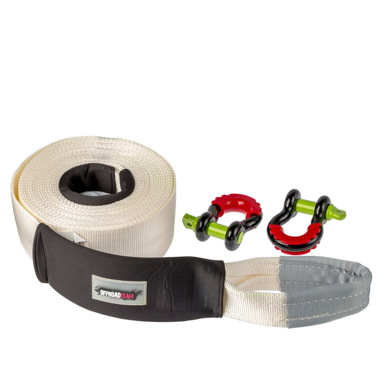 Стропа динамическая OFFROADTEAM 11тонн, длинной 11 метров, с Шаклами Динамическая стропа OFFROADTEAM предназначен для мягкого рывка застрявшего автомобиля. За счет растяжения при рывке, а затем сжатия, динамический трос позволяет аккуратно вытащить застрявший автомобиль. Характеристики: Материал - нейлон. Ширина - 100 мм. Длина - 11 метров. Максимальная допустимая нагрузка - 11 тонн. Эластичность (удлинение при нагрузке) - 15%. Вес 6,1 кг. Размеры в сумке – 33/33/10,5 см. Комплектация: Стропа динамическая 11м – 1шт. Шакл 4,7т (3/4") – 2 шт. Сумка для хранения – 1шт. Стяжка для хранения – 1шт. ЦВЕТ ТРОСА МОЖЕТ ОТЛИЧАТЬСЯ ОТ ПРЕДСТАВЛЕННОГО НА ФОТО