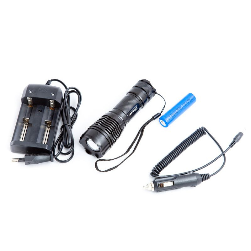 Светодиодный фонарь Sanguan 3G-F1 ZOOM. Данная светотехника для ручного применения оснащена мощным светодиодом CREE XM-L T6 и объемной аккумуляторной батареей емкостью в 3600mAh. Лед-фонарик имеет несколько вариантов светоизлучения и функцию ZOOM, которая обеспечивает радиус пучка света в различных размерах. Режимы освещения: 100%-50%-30%-Сторб-SOS, переключаются они при помощи кнопки на корпусе.
