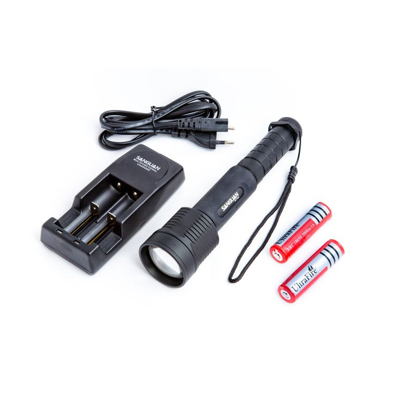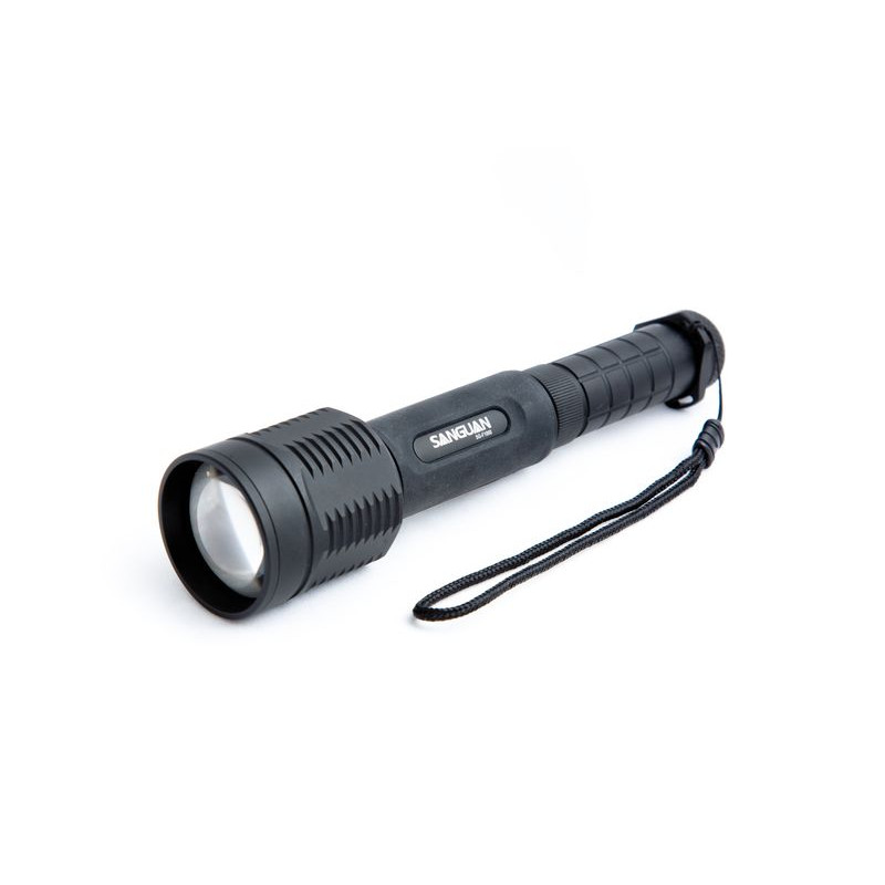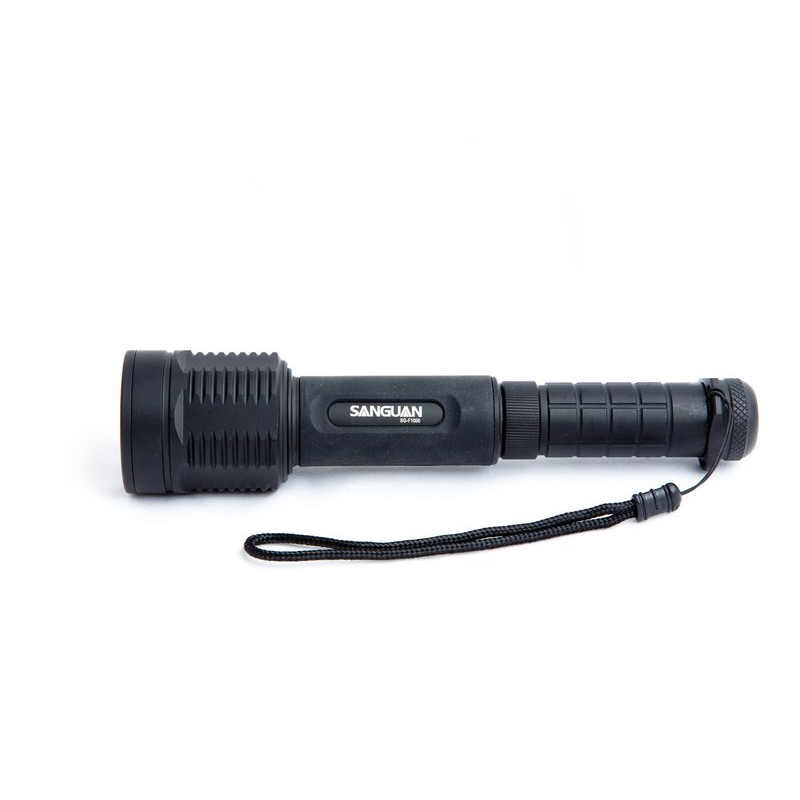 Фонарь SANGUAN SG-F1000 с одним ярким светодиодом CREE XM-L T6 со световым потоком 1000Lm. Прекрасно справляется с нехваткой света, может использоваться в качестве светодиодного прожектора благодаря регулируемой асферической линзе и большому углу засветки, а так же сфокусированному лучу с дальностью до 500 метров.