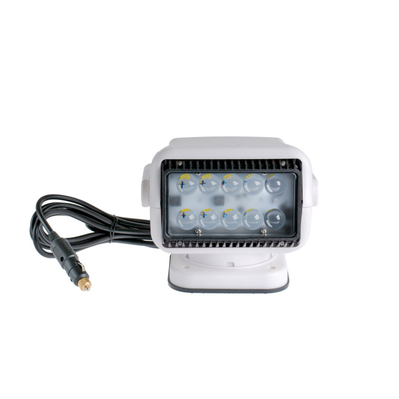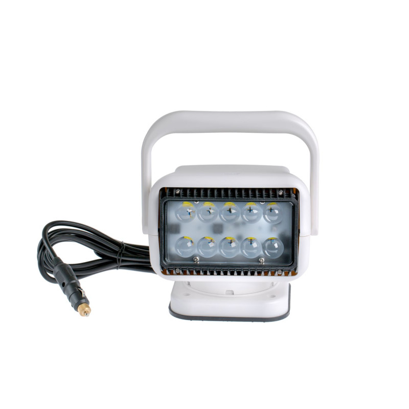 Фара искатель светодиодная 50 Вт с дистанционным управлением предназначена для установки на металлические поверхности различных транспортных средств. Мощный неодимовый магнит гарантирует надежное и устойчивое крепление, вне зависимости от погодных условий и перепадов температур. Модель активно используется автомобилистами, владельцами лодок, катеров, вездеходов, яхт и другого транспорта, имеющего бортовую сеть с напряжением 12 Вольт. Благодаря ярким светодиодам, суммарной мощностью 50 Ватт, фара-искатель применяется охранными службами для подсветки удаленных объектов.
