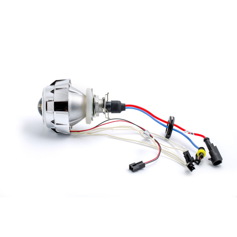 Конструкция линза включает в себя зеркальный отражатель, специальную оптическую систему уникального качества, полностью прозрачную линзу. Линза работает в режиме ближнего и дальнего света в зависимости от положения подвижной металлической шторки.