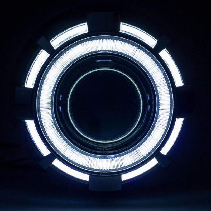 Два ярких габаритных кольца выполненных по технологии COB дают возможность быстро менять внешний вид фары различным сочетание подсветки.