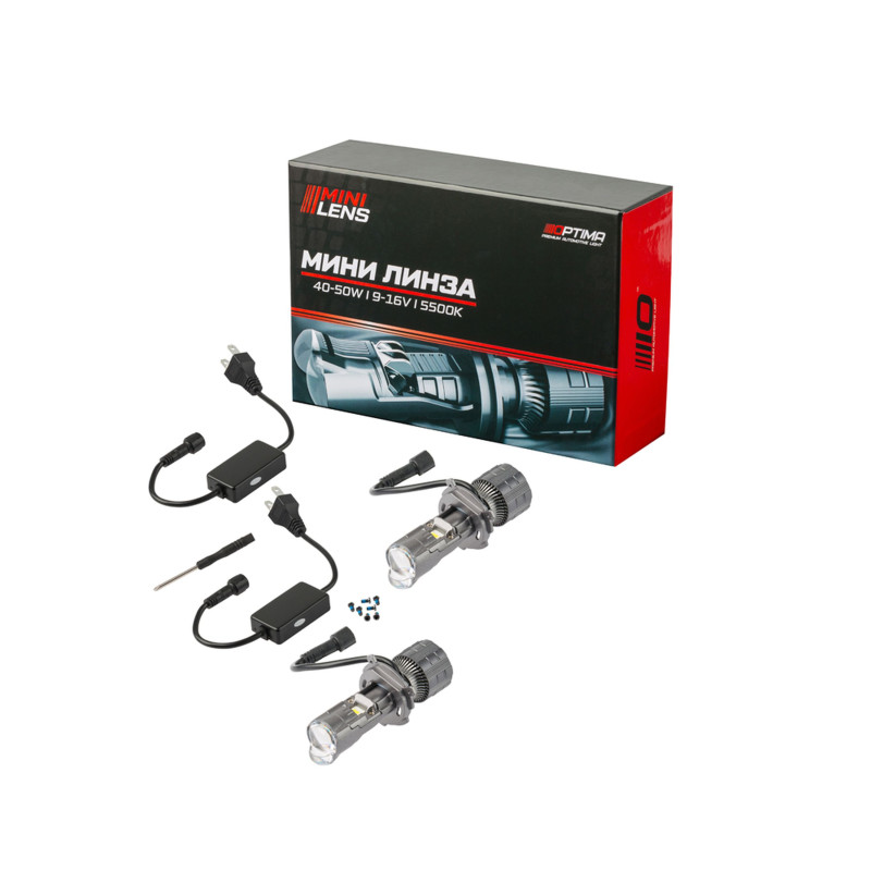 Мини-линза Optima H4, 50W – устанавливается в фару вместо галогеновой лампы. Встроенная линзы обеспечивая правильное светораспределения света и дает четкую свето-теневую границу. Это обеспечивает хорошую видимость на дороге в любых погодных условия. Мини-линза Optima H4 ML-H4-50 работает в двух режимах – ближнего и дальнего света.
