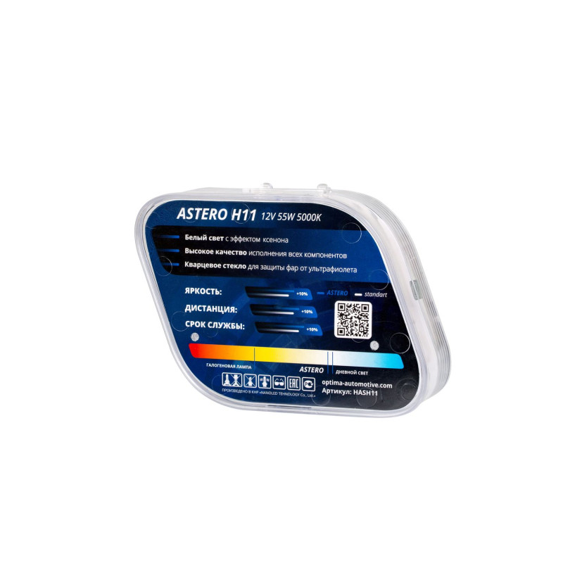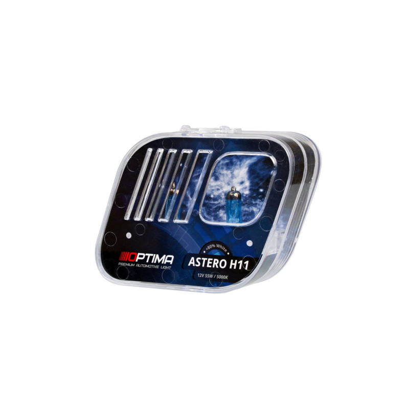 Галогенные лампы Optima Astero H11 +80% White 5000K- Откройте для себя высокотехнологичные галогенные лампы Optima Astero, повышенная цветовая температура производит такое же впечатление, как свет стандартных ксеноновых ламп. Свет этой лампы максимально приближен к естественному дневному свету, - это позволяет лучше концентрироваться на дороге и воспринимать контрасты на большом расстоянии, в отличие от стандартных желтых ламп. Современный дизайн с серебристым колпачком делает эту лампу идеальным вариантом для любого вида фар.