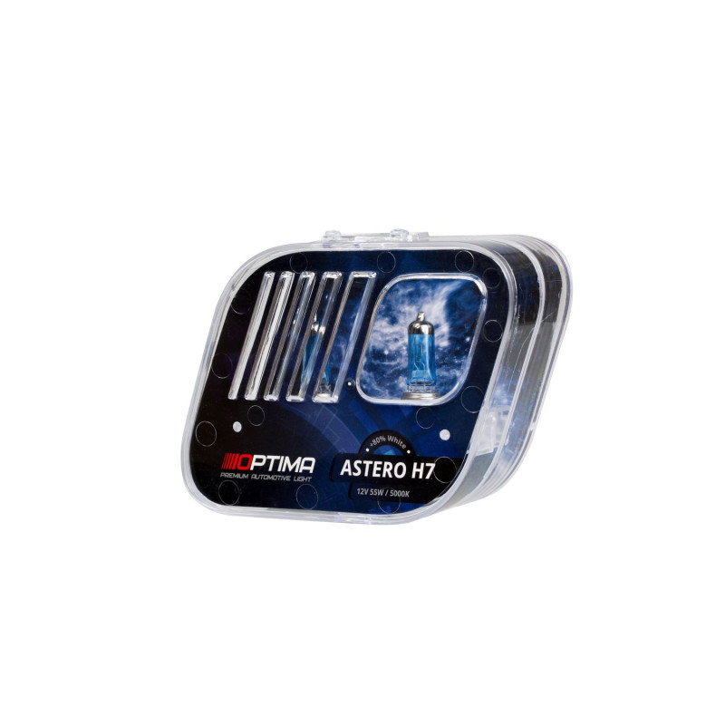 Галогенные лампы Optima Astero H7 +80% White 5000K- Откройте для себя высокотехнологичные галогенные лампы Optima Astero, повышенная цветовая температура производит такое же впечатление, как свет стандартных ксеноновых ламп. Свет этой лампы максимально приближен к естественному дневному свету, - это позволяет лучше концентрироваться на дороге и воспринимать контрасты на большом расстоянии, в отличие от стандартных желтых ламп. Современный дизайн с серебристым колпачком делает эту лампу идеальным вариантом для любого вида фар.