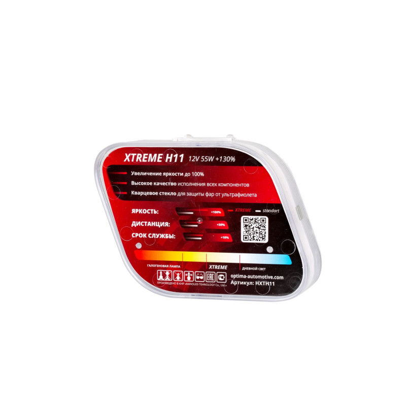 Галогенные лампы Optima Xtreme H11 +130% light 4200K- При вождении ночью требуется максимальная освещенность дороги. Чем ярче освещение, тем быстрее вы сможете реагировать на изменение ситуации. Xtreme – наиболее яркая галогенная лампа компании Optima.