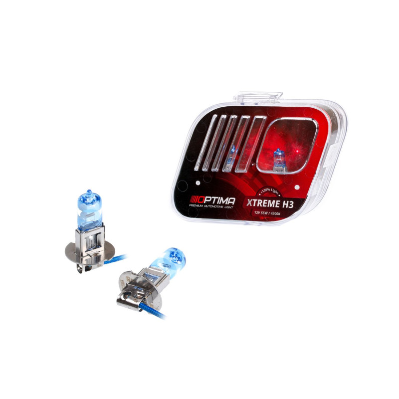 Галогенные лампы Optima Xtreme H3 +130% light 4200K- При вождении ночью требуется максимальная освещенность дороги. Чем ярче освещение, тем быстрее вы сможете реагировать на изменение ситуации. Xtreme – наиболее яркая галогенная лампа компании Optima.