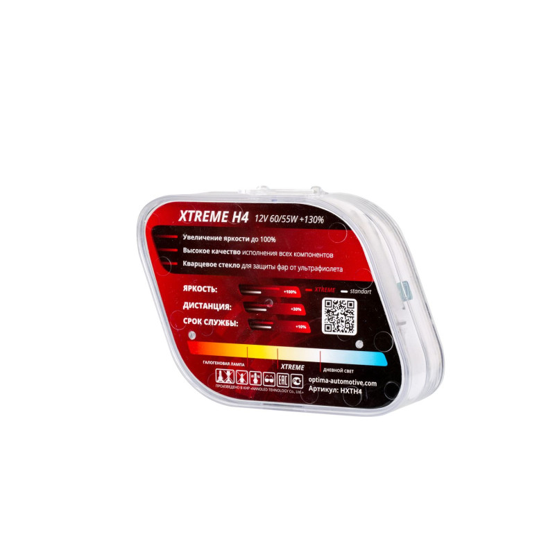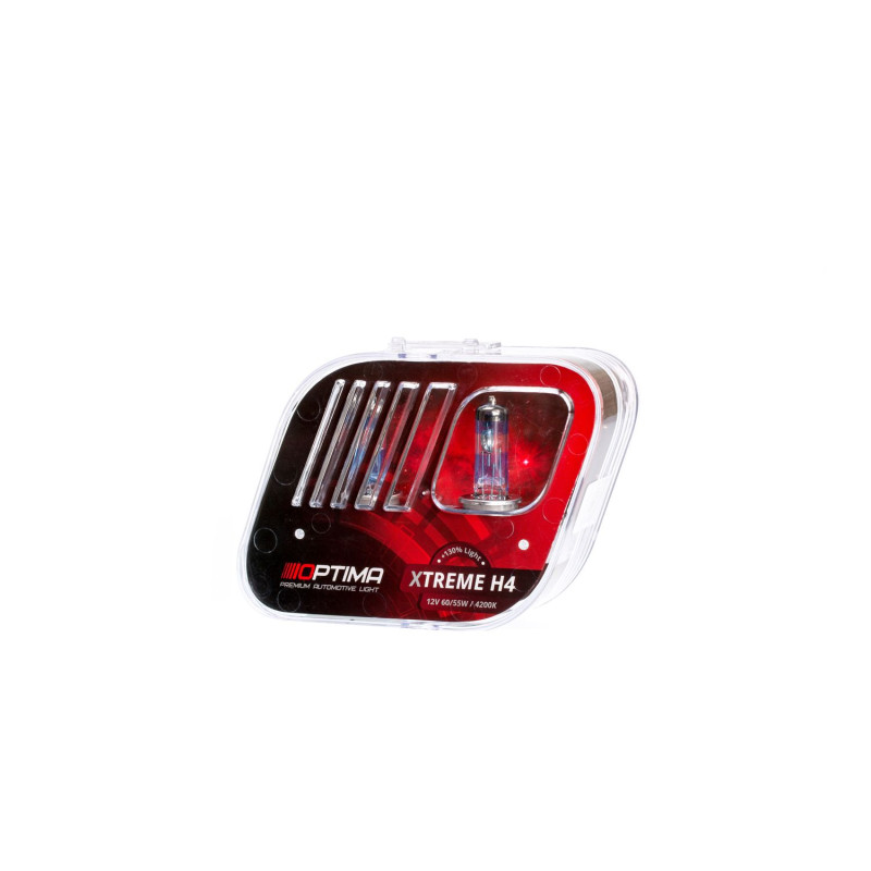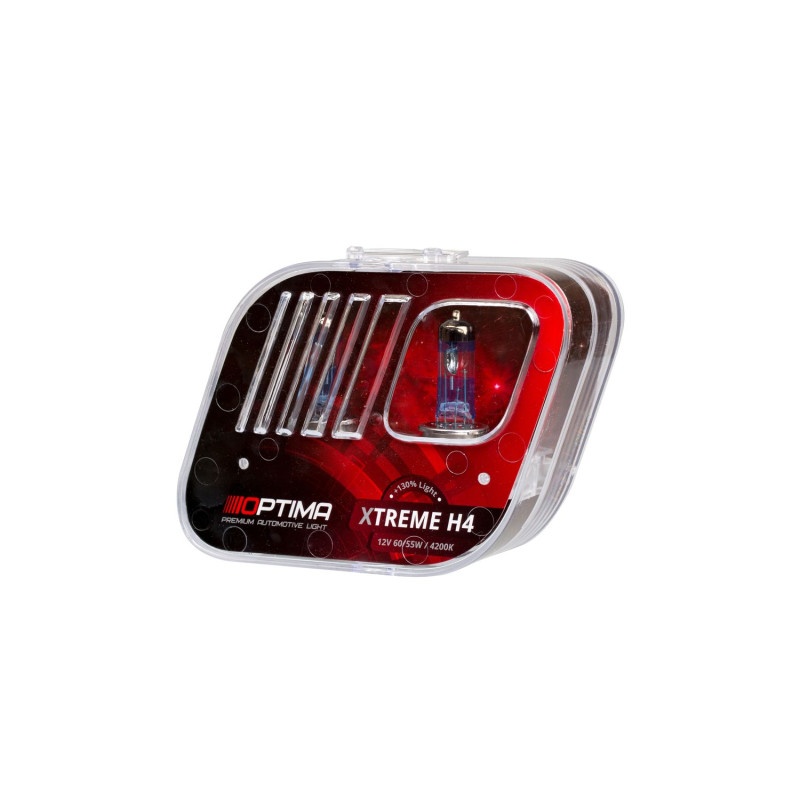 Галогенные лампы Optima Xtreme H4 +130% light 4200K- При вождении ночью требуется максимальная освещенность дороги. Чем ярче освещение, тем быстрее вы сможете реагировать на изменение ситуации. Xtreme – наиболее яркая галогенная лампа компании Optima.