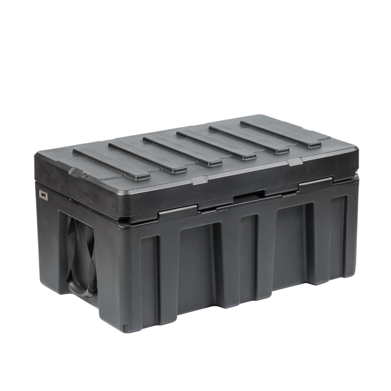 Оснащён надежными замками из нержавеющей стали с фиксатором и проушинами для замков или пломб; ручками со вставками из ABS-пластика, которые хорошо лежат в руке и комфортны при использовании; уплотнением из EPDM, устойчивым к атмосферным воздействиям и пыли; газовыми упорами для фиксации крышки кейса в открытом состоянии; пазами на корпусе, которые используются для крепления ремней фиксации на багажнике и в кузове; встроенной открывалкой для бутылок.