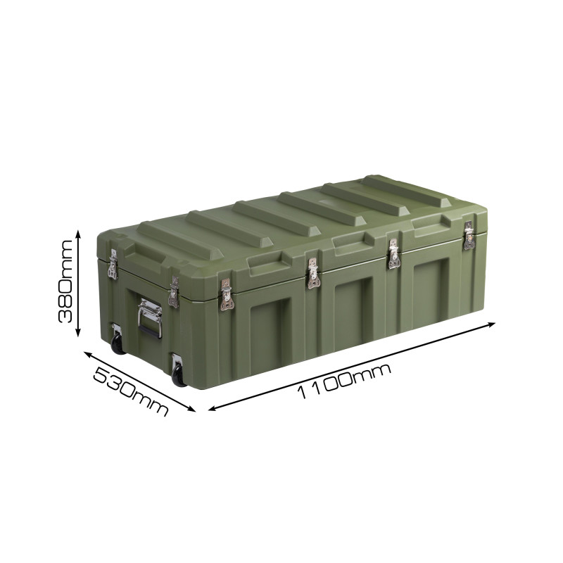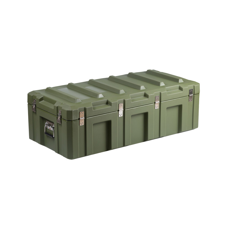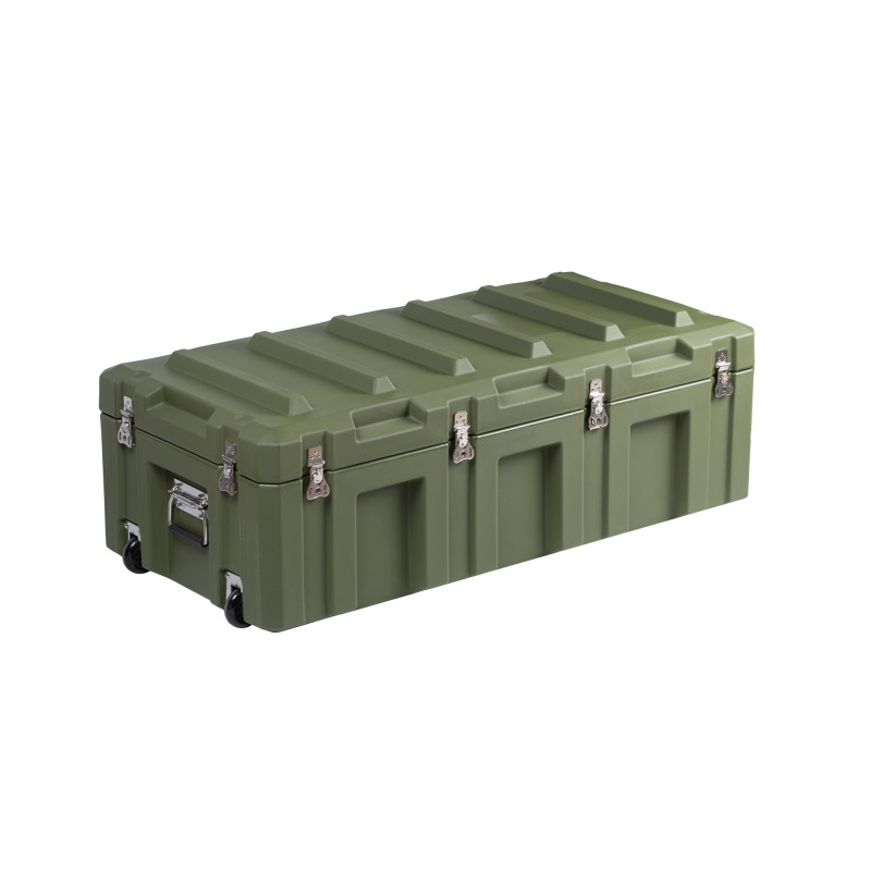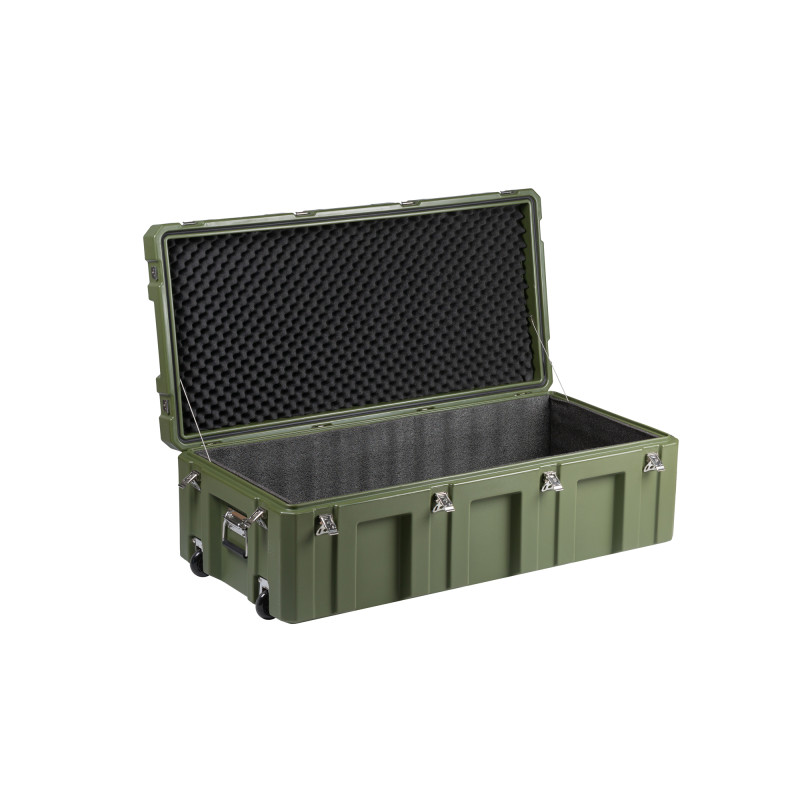 Транспортировочный кейс выполнен из LLDPE - Линейный полиэтилен низкой плотности, материал обладает повышенный прочностью и стойкостью к температурам. На кейсе установлены надежные металлические замки с проушинами для замка или пломбы. Ребра жесткости обеспечивают дополнительную прочность. Герметичное соединение с неопреновой прокладкой обеспечивают защиту содержимого от влаги и пыли. Кейс оснащен воздушным клапаном для выравнивания давления.