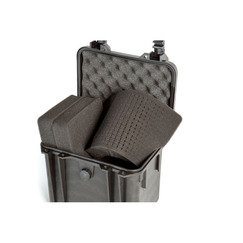 В комплекте с кейсом поставляется ложемент, изготовленный из поропласта с насечками, который позволяет быстро формировать ячейки под размер подходящего прибора или оборудования.