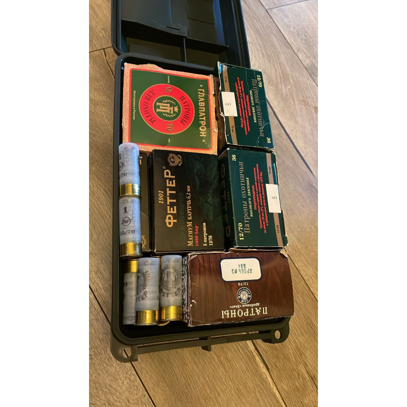Патронф 12 калибра, в зависимости от укладки помещаться от 125 до 137 штук.
