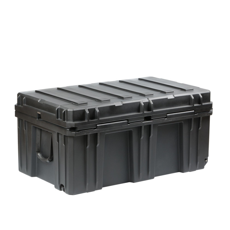 Оснащён надежными замками из нержавеющей стали с фиксатором и проушинами для замков или пломб; ручками со вставками из ABS-пластика, которые хорошо лежат в руке и комфортны при использовании; уплотнением из EPDM, устойчивым к атмосферным воздействиям и пыли; газовыми упорами для фиксации крышки кейса в открытом состоянии; прочными колесами с низким уровнем шума; пазами на корпусе, которые используются для крепления ремней фиксации на багажнике и в кузове; встроенной открывалкой для бутылок.