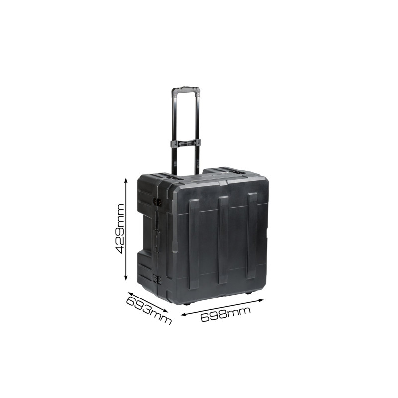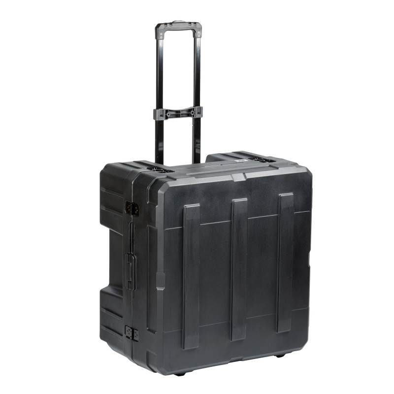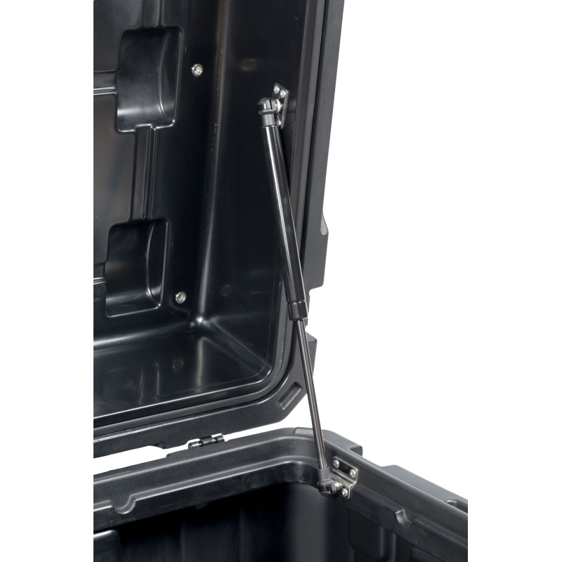 Оснащён надежными замками из нержавеющей стали с фиксатором и проушинами для замков или пломб; ручками со вставками из ABS-пластика, которые хорошо лежат в руке и комфортны при использовании; уплотнение из EPDM устойчивым к атмосферным воздействиям и пыли, газовыми упорами для фиксации крышки кейса в открытом состоянии; В крышке кейса установлена панель с отверстиями для крепления инвентаря. выдвижной телескопической ручкой для перевозки кейса, прочными колесами с низким уровнем шума; пазами на корпусе, которые используются для крепления ремней фиксации на багажнике и в кузове; встроенной открывалкой для бутылок.