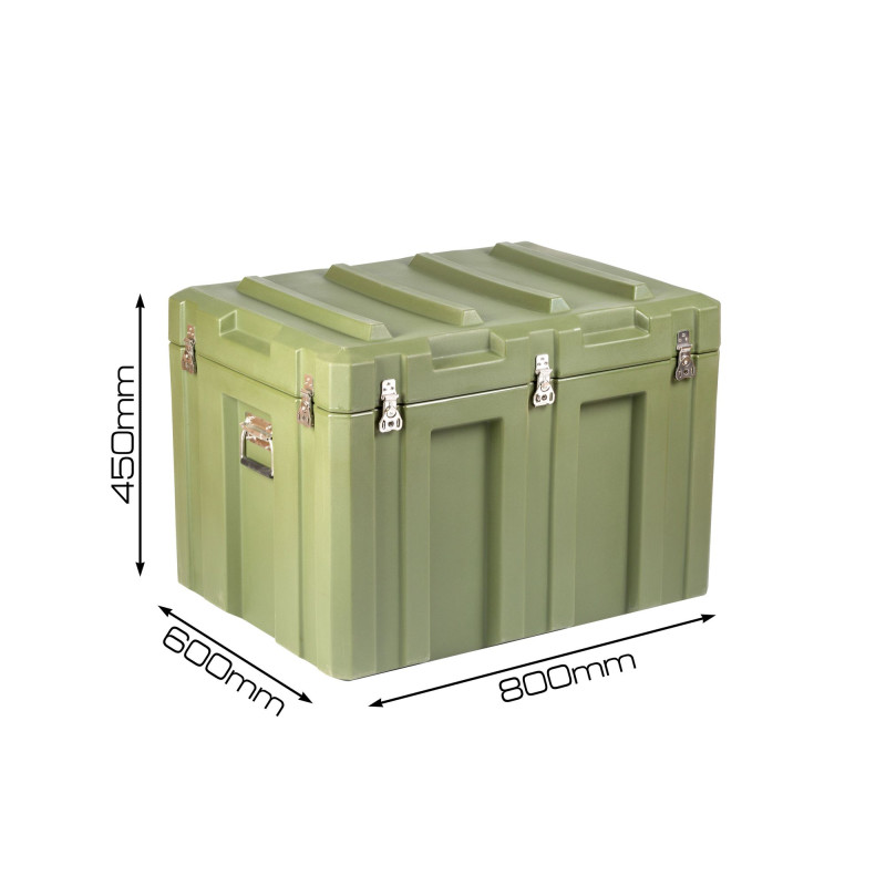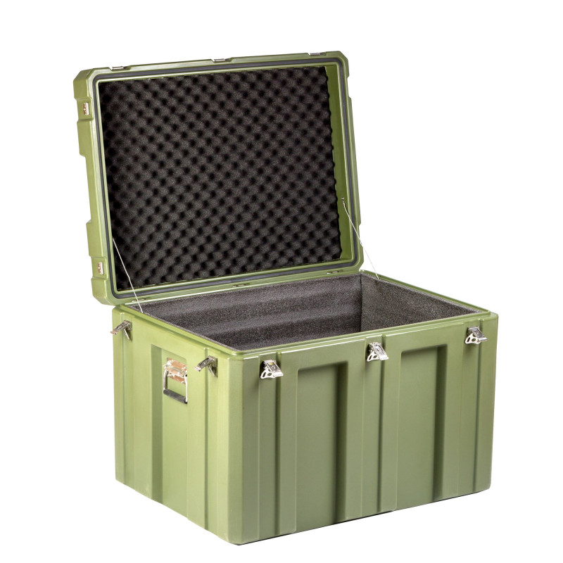 Транспортировочный кейс выполнен из LLDPE - Линейный полиэтилен низкой плотности, материал обладает повышенный прочностью и стойкостью к температурам. На кейсе установлены надежные металлические замки с проушинами для замка или пломбы. Ребра жесткости обеспечивают дополнительную прочность. Герметичное соединение с неопреновой прокладкой обеспечивают защиту содержимого от влаги и пыли. Кейс оснащен воздушным клапаном для выравнивания давления.
