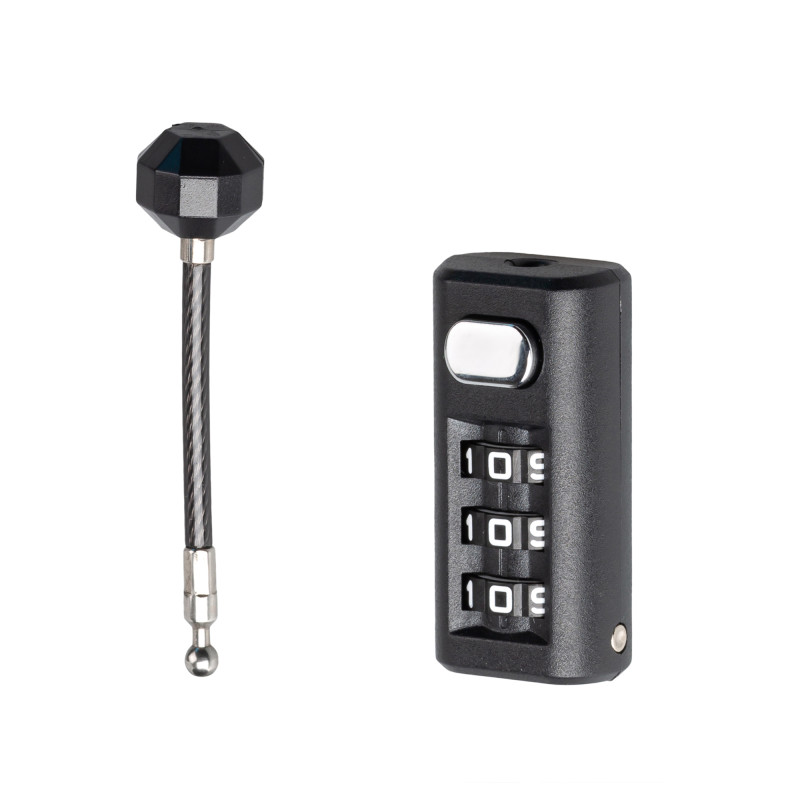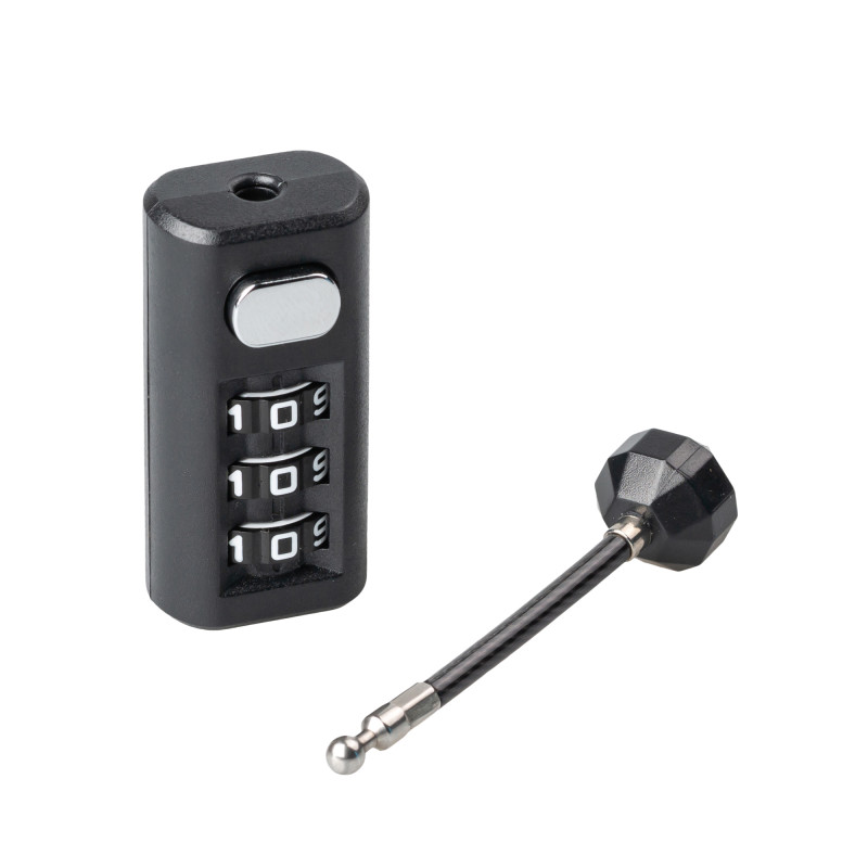 Замок кодовый модель 623 для кейса с гибким штырем из стального троса в оплетке, минимальное отверстие 4 мм.