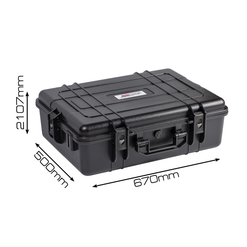 Герметичность IP67: Неопреновый уплотнитель и надёжные замки обеспечивают полную пыле- и водонепроницаемость. Кейс выдерживает кратковременное погружение на глубину до 1 метра, ни проливной дождь, ни падение в воду ему не страшны.
