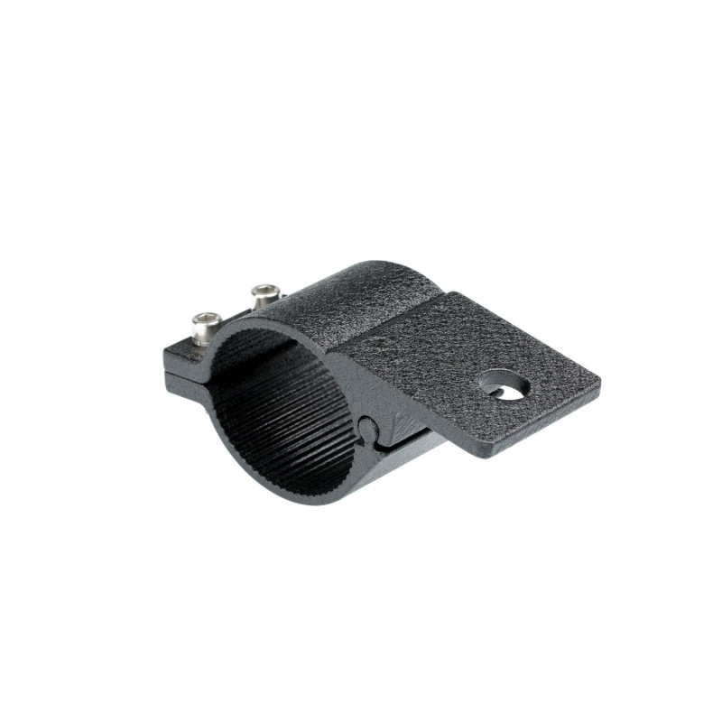 Универсальное крепление выполнено в форме кронштейна-хомута из прочного авиационного алюминия, с защитным анодированным покрытием для предохранения конструкции от коррозии и царапин. Устройство предназначено для установки светодиодных фар горизонтальную трубу диаметром 2.5 дюйма без необходимости высверливать в ней отверстия.