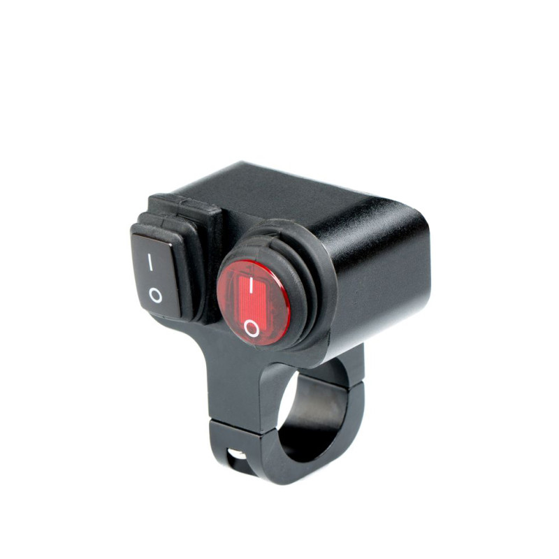 Выключатель влагозащищенный 2228B 2х кнопочный. Устанавливая дополнительное освещение в свой автомобиль в виде светодиодной панели, прожектора или фары, целесообразно позаботиться о наличии качественного выключателя. Как показывает практика, лучшим образом со своими задачами справляются влагозащищенные выключатели, которые не боятся дождя, имеют удобный способ крепления и максимально эргономичны в использовании. Влагозащищенный выключатель 2228B черного цвета оснащен двумя двухпозиционными кнопками. Одна из них имеет свою светодиодную подсветку во включенном состоянии, что делает удобным ее использование в темное время суток. Удобный механизм крепления в виде хомута с отверстием D=22 мм. арт: NL-KN-2228B