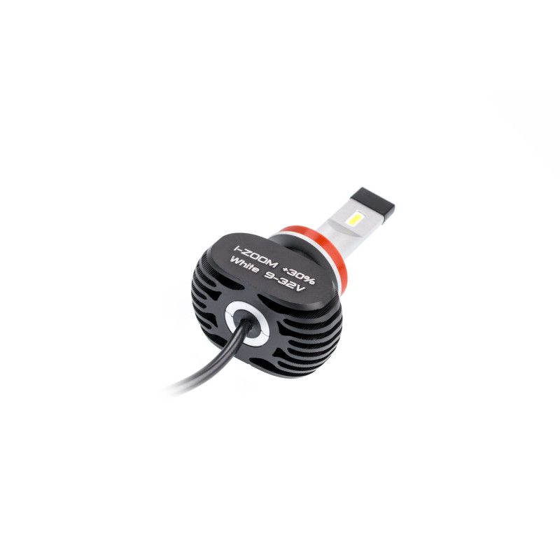 Светодиодные лед-лампы с цоколем H11 от производителя Optima Premium обеспечивают свет ближнего и дальнего радиуса действия, а также противотуманный. Благодаря диодам марки Seoul-CSP, которые увеличили яркость свечения ламп серии i-ZOOM на 30%, создается холодный белый световой поток силою в 5500K. Кроме того, светодиодные чипы установлены в модулях таким образом, чтобы полностью повторить нить накаливания галогеновой лампы. Это создает идеальную светотеневую границу потока освещения. Светодиоды имеют компактный радиатор с внешним драйвером, что позволяет монтировать лампы в фару без разрезания задней крышки.