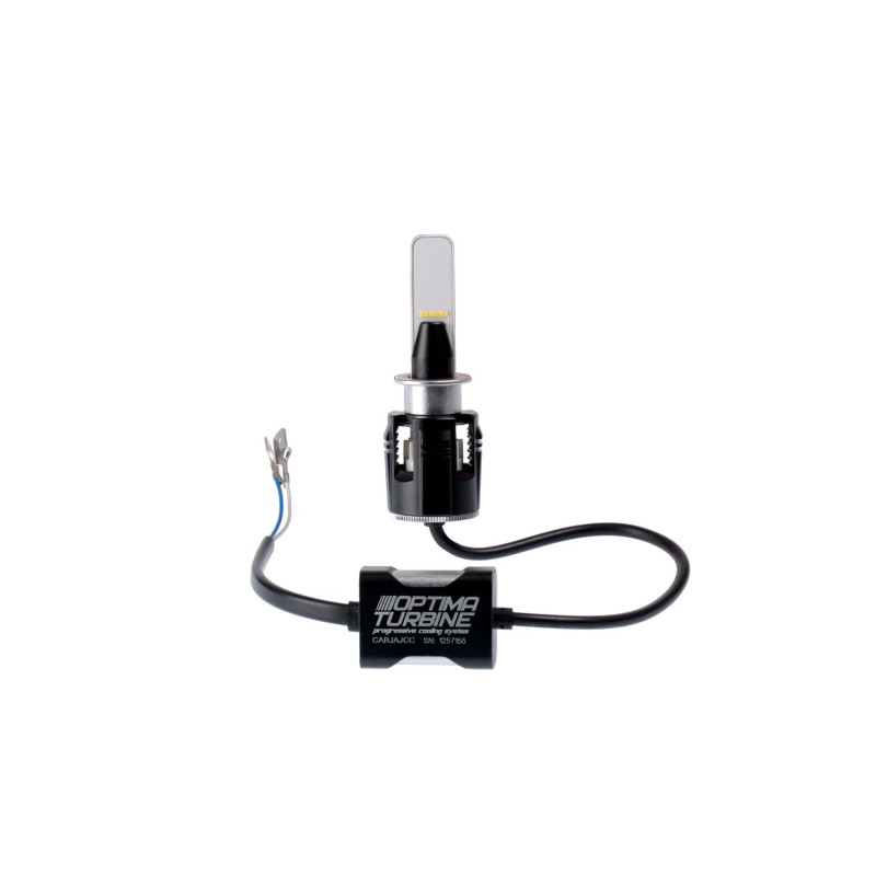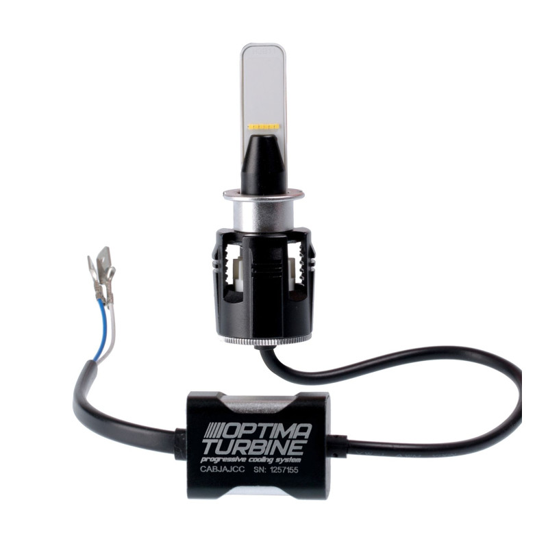 Светодиодные лед-лампы с цоколем H3 от производителя Optima Premium обеспечивают качественный белый свет благодаря сверхъярким светодиодным чипам CSP-Y11. Размещение данного модуля не нарушит расстояние фокусировки штатных элементов освещения, так как тонкий алюминиевый анодированный радиатор светодиодов позволяет вмонтировать чипы наиболее близко к ним. Инновационная конструкция лампы содержит мощную турбину, создающую охлаждающий воздушный поток, и радиатор с высокой теплопроводностью. Что обеспечивает в закрытом корпусе фары эффективную работу системы принудительного охлаждения светодиодов (progressive cooling system). Модули освещения серии Optima Led Turbine совместимы с основным светом фар в линованной и рефлекторной оптике.