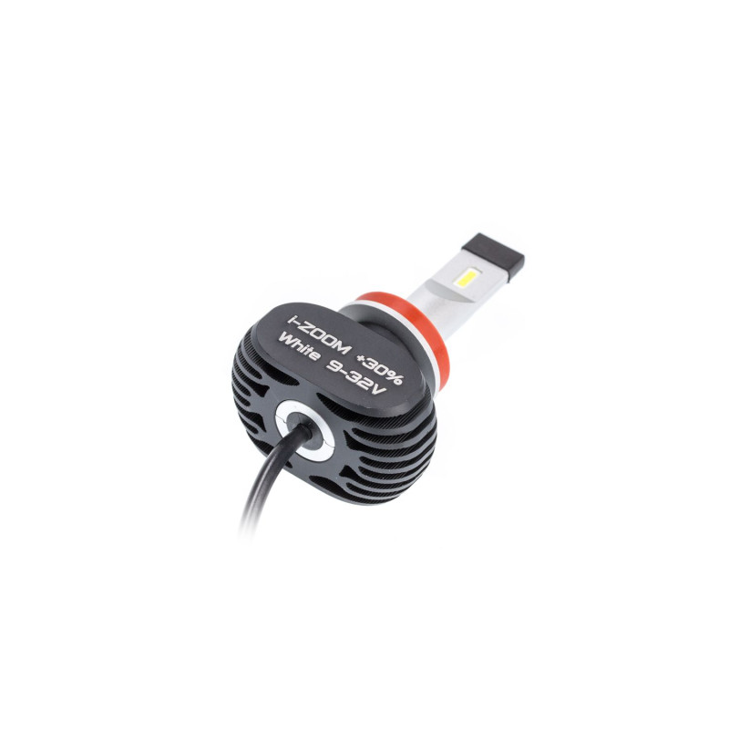 Светодиодные лед-лампы с цоколем H8 бренда Optima Premium, Россия, создают дальний, ближний и противотуманный свет принципиально улучшенного качества. Благодаря светочипам Seoul-CSP, которые увеличили мощность свечения ламп серии i-ZOOM на 30%, воспроизводится белый и холодный поток света яркостью в 5500K. Срок службы чипов - 36000 ч. Кроме того, светодиоды закреплены в модулях определенным образом, для точной имитации нити накаливания галогеновой лампы. Такая конструкция лампы при ее эксплуатации дает возможность создавать четкую светотеневую границу.