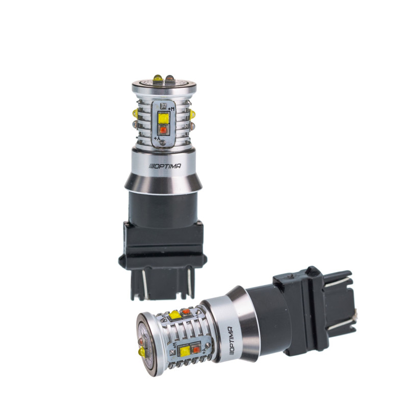 Светодиодная лампа Optima Premium 3157 MINI CREE-XBD CAN 50W 5100k 12-24V (белая/желтая) - двухконтактная лампа, с обманкой бортового компьютера CAN.