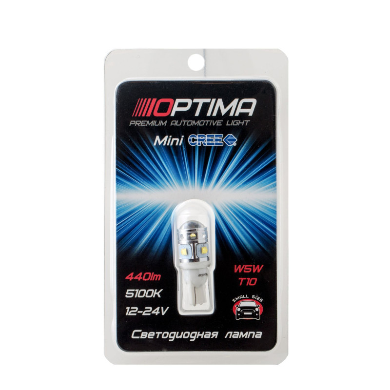 Светодиодная лампа Optima Premium с цоколем W5W CAN, светодиоды CREE XB-D 6 штук, Цветовая температура 5100K, 12-24V. Лампа с цоколем W5W белого цвета применяется на автомобилях как - габаритный огонь спереди, сзади - освещение салона - указатель поворота - стоп-сигнал Встроенный модуль устранения ошибки перегоревшей лампы позволяет установить лампу в любой автомобиль. Характеристики: — Тип диодов CREE-XB-D — Цветовая температура 5500K — Количество диодов 6 — Мощность 4.7 Ватт — Яркость 470 люмен — Рабочее напряжение 12-24 вольт Цена за одну 1 лампу. арт: OP-W5W-CAN-30W