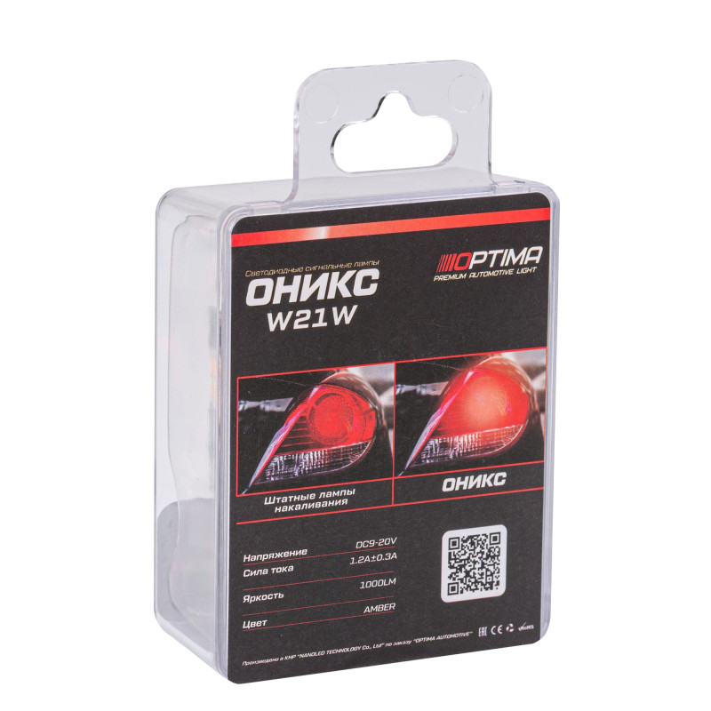 Светодиодная лампа Optima Premium LED серии ОНИКС с цоколем 7440 (W21). Встроиный модуль устранения ошибок (CAN). Цвет свечения Желтый.