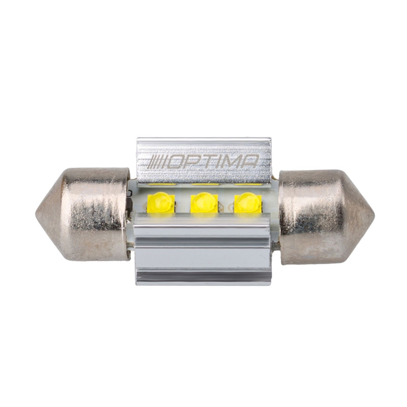 Светодиодная лампа Festoon 28 Optima MINI-CREE, светодиоды CREE (SV 7-8) Встроенный модуль устранения ошибки Места установки: - Освещение салона - Подсветка номерного знака - Подсветка ног Размер - диамтр 10мм, длинна 28мм Яркость - 300 Lm Мощность - 1.8W Рабочее напряжение - 12V Цветовая температура - 5000K Цена за 2 штуки