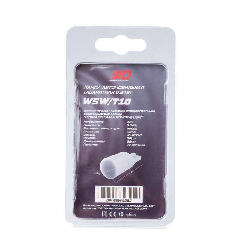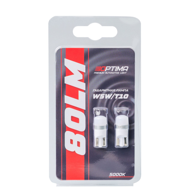 Светодиодная лампа W5W (T10) Optima Premium 80Lm, LG Chip, 0,84W, White, 12V, (W2.1X9.5D), комплект 2 шт.