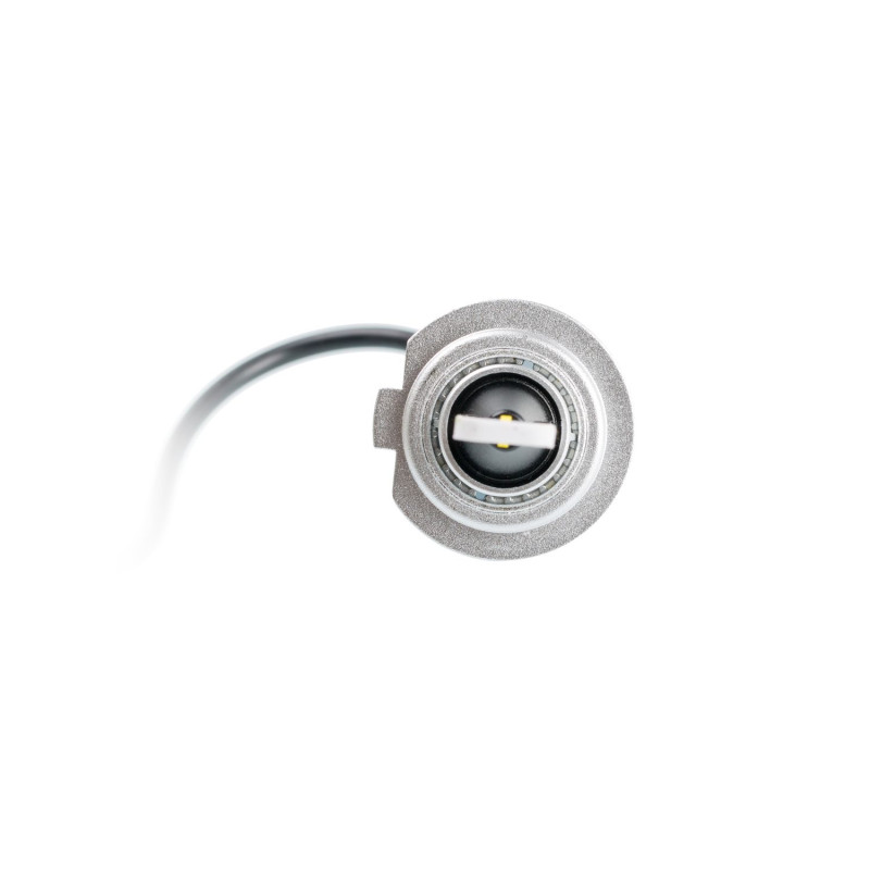 Тонкий радиатор из анодированного алюминия позволяет разместить светодиодные чипы максимально близко и сохранить фокусном расстоянии штатной лампы.
