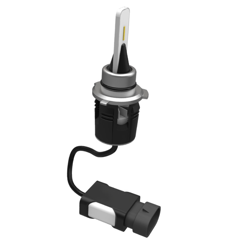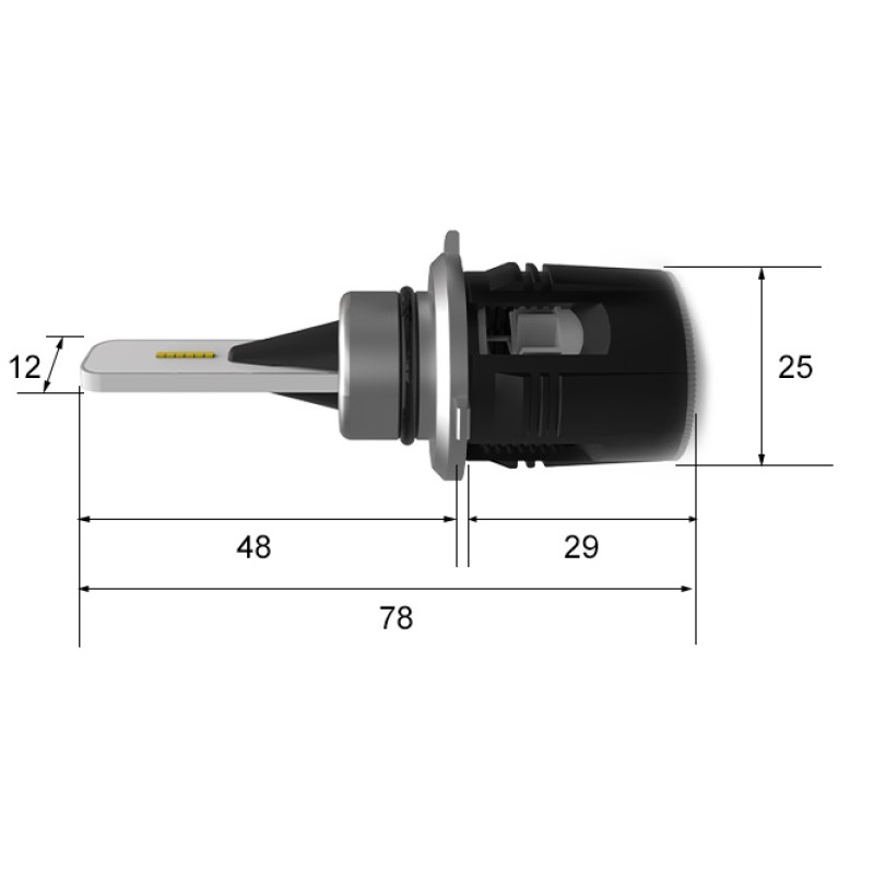 Тонкий радиатор из анодированного алюминия позволяет разместить светодиодные чипы максимально близко и сохранить фокусном расстоянии штатной лампы.