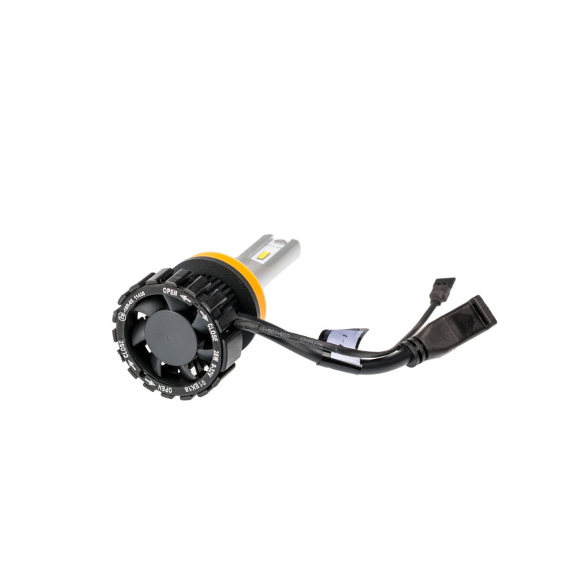 Тонкий радиатор из анодированного алюминия позволяет разместить светодиодные чипы в фокусном расстоянии как у галогеновой лампы. Минимальные размеры внешнего корпуса позволяют установить лампу практически для в любой фаре без резки крышки фары. Для защиты лампы от перегрева используется уникальная технология "TermoLock", контролирующая работу охлаждения и сводящая риск выхода из строя ламп практически к нулю. При выходе из строя вентилятора и при перегреве лампы система "TermoLock" снижает яркость свечения светодиодов.