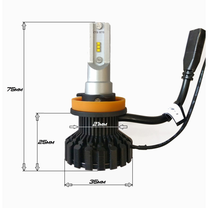 - Малый диаметр основания ламп и компактность радиатора обеспечивают удобство установки без резки заглушек, даже в фарах закрытого типа