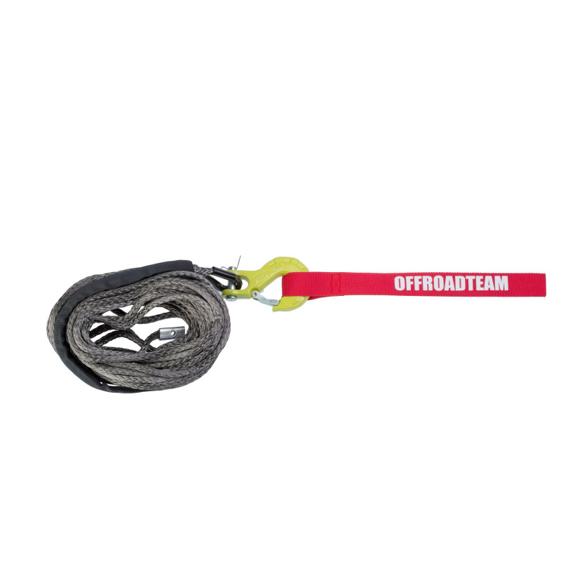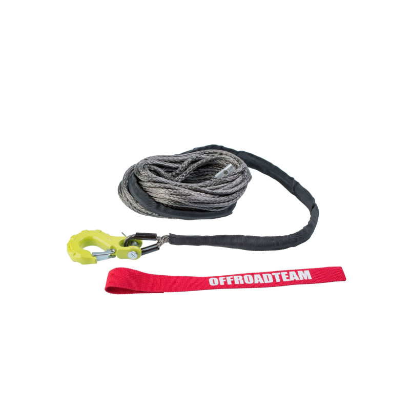 Трос для лебедки синтетический OffRoadTeam Professional 6,3 мм. х 15 м. с крюком, предназначен для комплектации лебедки.Замены отслужившего троса.