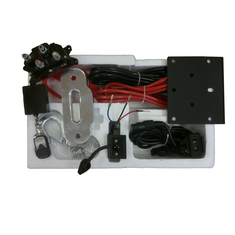Комплектуются герметичным контактором (блоком соленоидов) и двумя пультами управления, проводной на руль и радио пультом. Синтетическим тросом длиной 10 метров и толщиной 6мм произведен из прочного сверх высокомолекулярного полиэтилена (кевларовый), для продления срока службы троса лебедка укомплектована алюминиевым клюзом.
