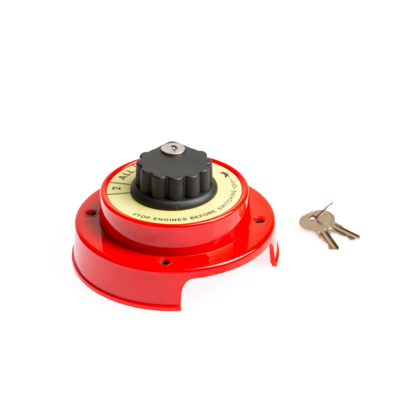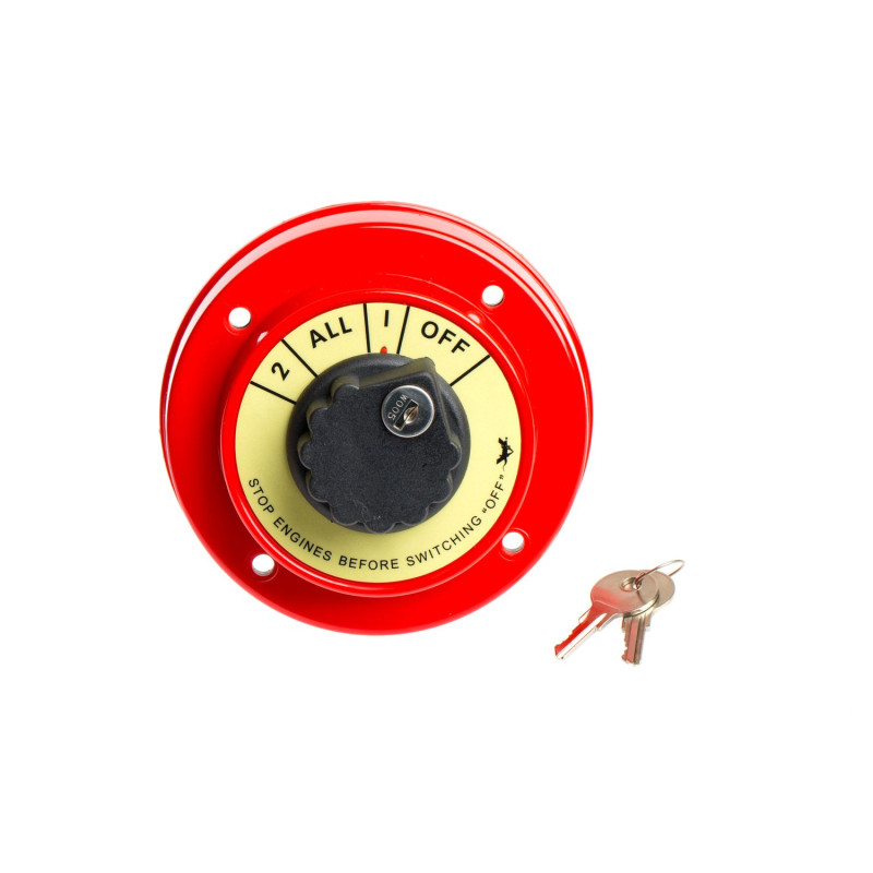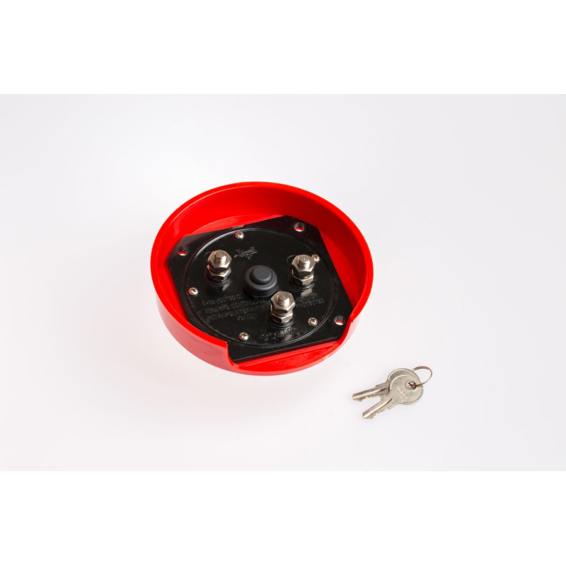 Выключатель массы ORT-BIS-28 (размыкатель плюса), 275/1250 А, 12-48 В, корпус круглый Красный на ДВА АКБ с КЛЮЧЕМ.