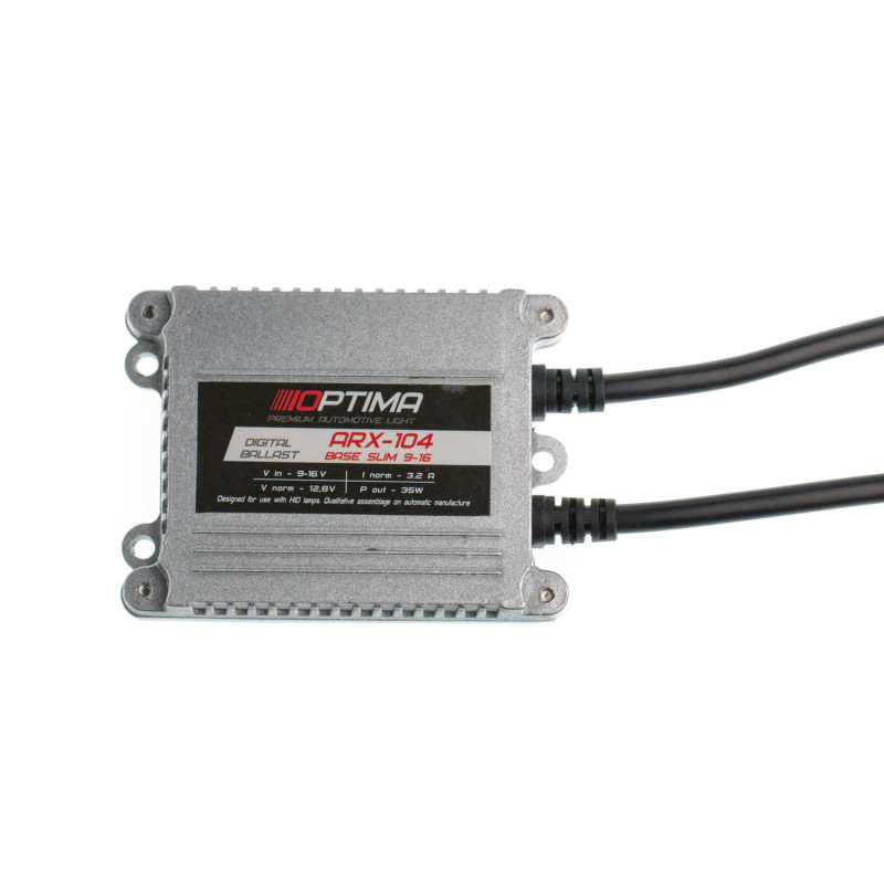 Блок розжига Optima Premium ARX-104 Base slim 9-16V 35W - блок розжига с тонким корпусом, может быть установлен вместо блоков других марок с разъемами KET таких как ACUMEN, SHO-ME, IMEGO, SILVER STONE, XENOTEX и других.